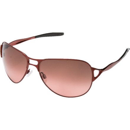 The oversized aviator styling of the Oakley Women's Hinder Sunglasses is like a VIP, all-access, backstage, front-row, red-carpet pass to wherever the hell you want. In true Oakley style, the frames are made of ultra-lightweight C-5 material that's as comfortable on your face as it is tough. An eight-base lens curvature means clear vision without that crazy amusement-park-whacky-mirror distortion you find in oversized dime-store shades.